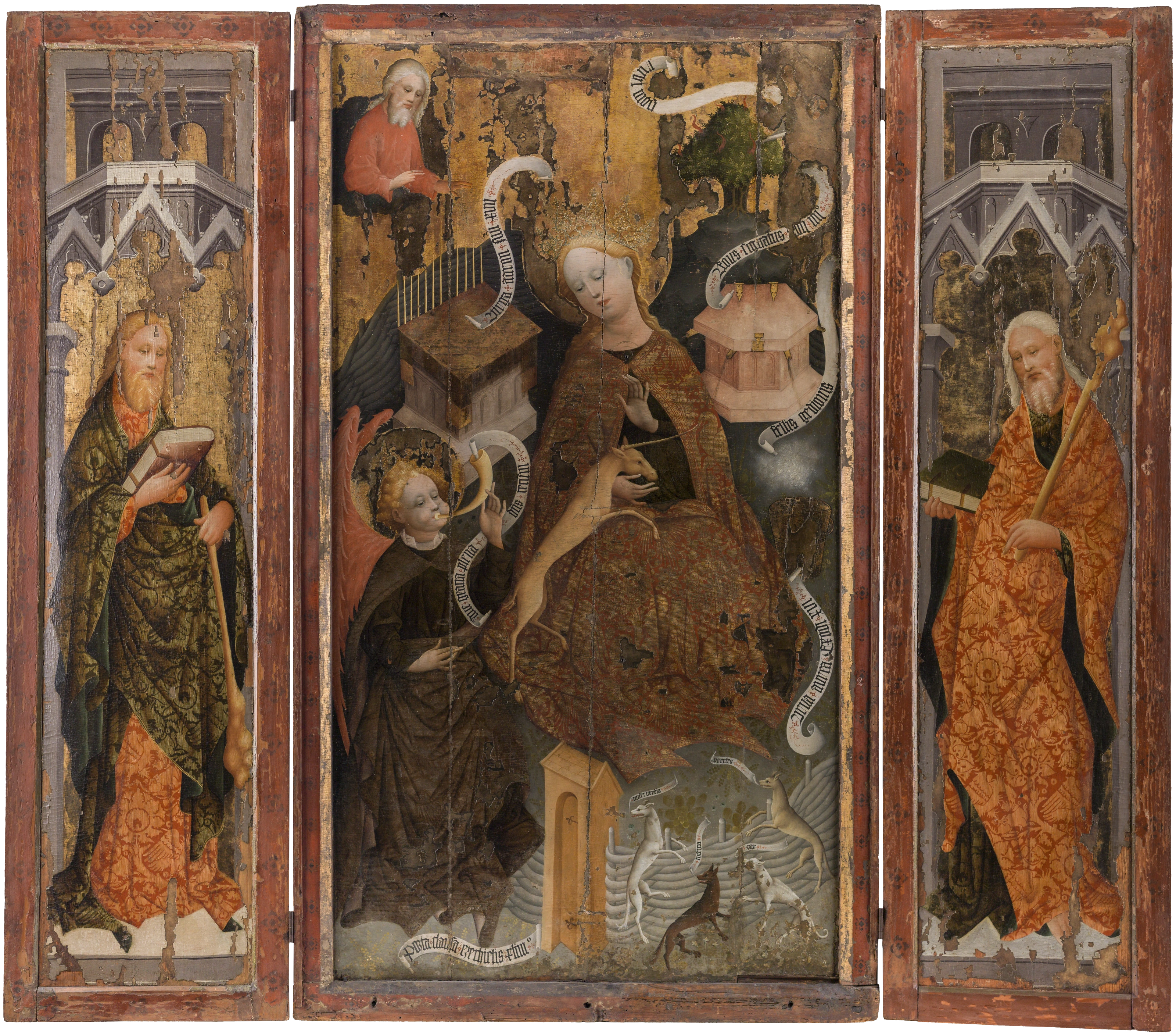 Triptychon mit Einhorn-Verkündigung und Heiligen, um 1430/1440